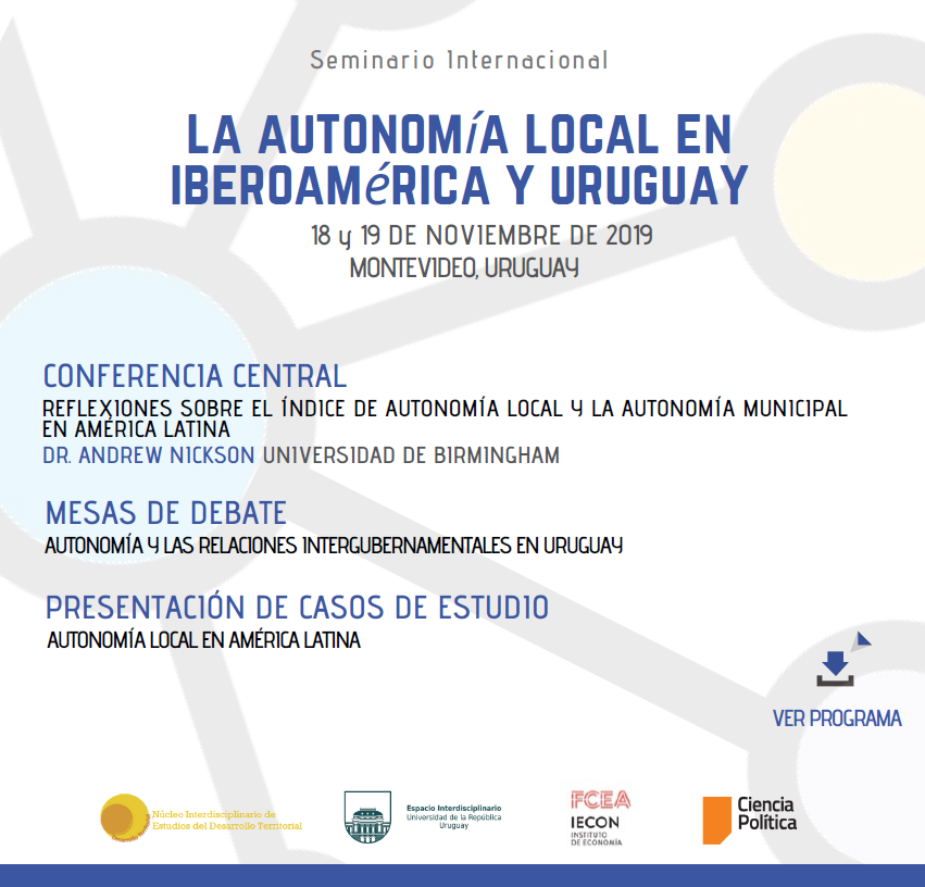 El Núcleo Interdisciplinario de Estudios de Desarrollo Territorial de la Universidad de la República tiene el agrado de invitarle al