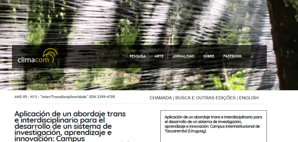 Fue publicado en ClimaCom, revista académica sobre cultura científica editada por la Universidad Estatal de Campinas, Brasil, un artículo sobre