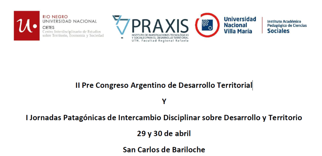 Está abierta la convocatoria a presentar resúmenes de ponencias en el marco del II pre-Congreso Argentino de Desarrollo Territorial y
