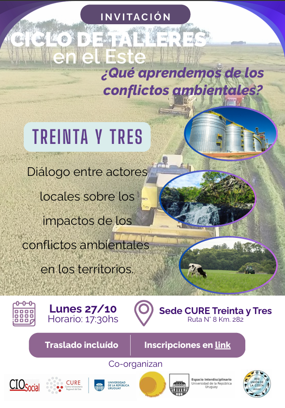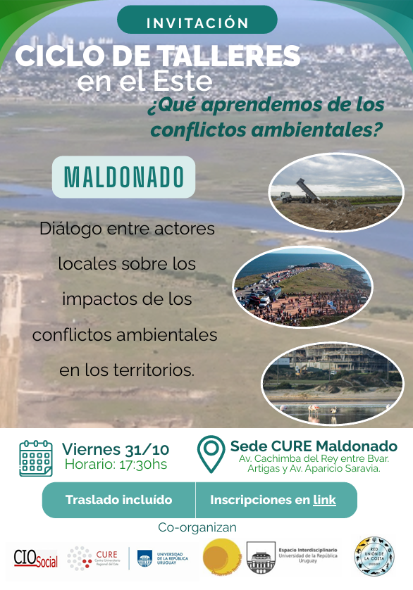 Durante los días 27, 30 y 31 de octubre de 2025 se desarrolló un ciclo de talleres orientado a contribuir al diálogo entre actores locales sobre los impactos de los conflictos ambientales en los territorios y su incidencia en el desarrollo territorial de la Región Este del país, así como a la construcción de conocimiento desde una perspectiva transdisciplinaria.