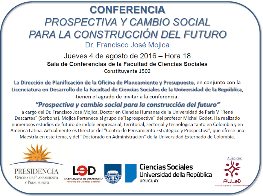 Conferencia «Prospectiva y cambio social para la construcción del futuro»Por Andrea Franco Quinteros / 4 agosto, 2016