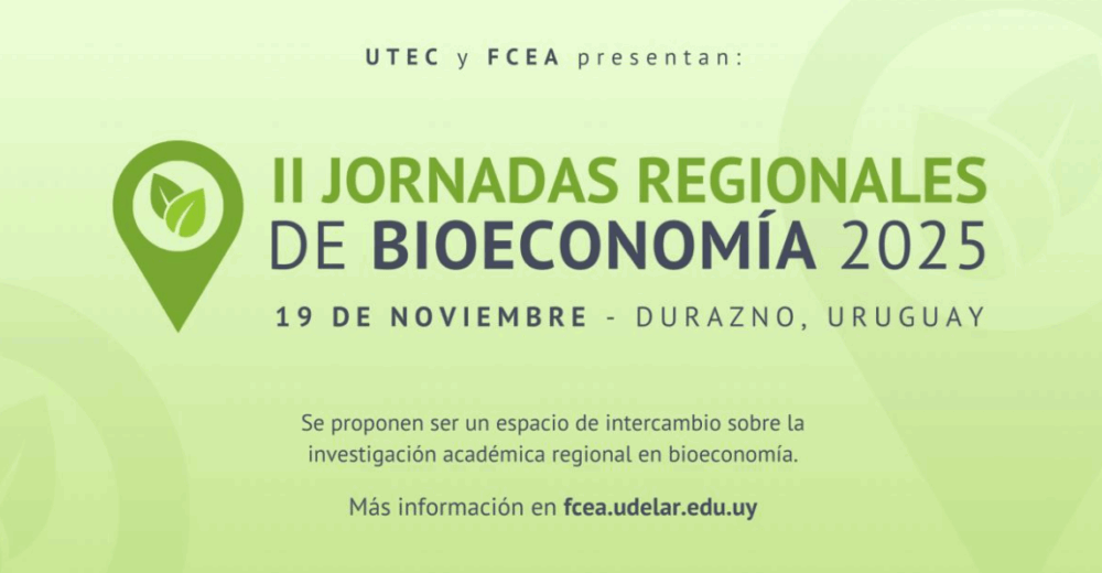 La Facultad de Ciencias Económicas y de Administración de la Universidad de la República y la Universidad Tecnológica, invitan a docentes, investigadoras e investigadores a participar en las II Jornadas Regionales de Bioeconomía 2025.
